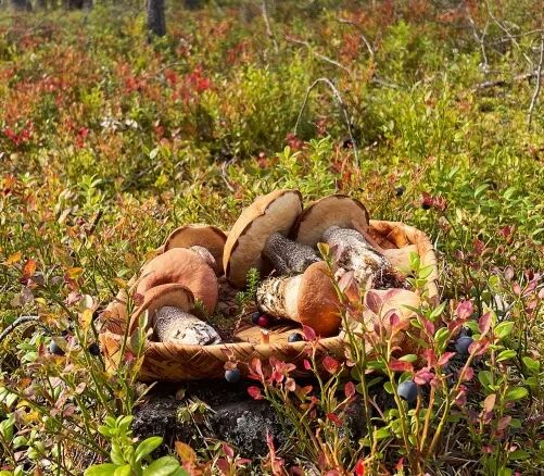 Los, zieht die Schuhe aus!» Anu lächelt freundlich. Aber sie meint es ernst. «Probiert es einfach!» Klar, wieso denn auch nicht? Und so schreiten wir sogleich mit Anu, dieser liebenswürdigen Frau und Teilzeitschamanin (wie sie sich augenzwinkernd selbst nennt) durch das Unterholz der lappischen Wälder, um Beeren und Pilze zu suchen, unter den Füssen nichts als Moos und Gebüsch. Ein überraschend angenehmes Gefühl, denn es ist tatsächlich wie ein einziger flauschiger Teppich, der den Boden bedeckt. Das sei nicht nur gut für die Füsse, sondern es erde einen, bringe einen der Natur näher, so Anu. Wir befinden uns in Äkäslompolo, dem Tor zum Pallas-Yllästunturi-Nationalpark mit seiner gewaltigen Fjell-Landschaft, dramatischen Schluchten und glasklaren Seen, kurzum ein Ort, wo sich die Natur noch überwältigender gibt, als sie es in Finnisch Lappland ohnehin schon tut. Allmählich weicht das Grün den Gelb-, Orange- und Rottönen, eine Explosion der Farben steht unmittelbar bevor, Ruska, der finnische Herbstsommer, ist zum Greifen nah und der Wald entlädt seine ganze Lebenskraft wie im Rausch. Ein Füllhorn an Beeren und Pilzen, das vom Eichhörnchen bis zum Bären alle Tiere nährt, um den Winter am Polarkreis zu überleben. Sehr weit kommen wir nicht. «Ah, eine Fuchsrotkappe», ruft Anu entzückt und greift sich den zu den Röhrlingen gehörenden Speisepilz. In der samischen Kultur spielen Pilze als Nahrungsmittel eigentlich keine Rolle, sie gehören den Rentieren und anderen Waldbewohnern. Nach nur wenigen Minuten quillt der Korb beinahe über vor Pilzen, Heidelbeeren, Krähenbeeren und Cranberrys. Auch Wacholder gäbe es in Hülle und Fülle, doch den brauchen wir nicht für das heutige Menü. Wir treffen auf Toivo Quist, dessen Tipi bzw. Zelt-Kota das ganze Jahr über im Wald steht. Keine Angst, Toivo lebt nicht darin, sondern kocht nur leidenschaftlich gerne in der offenen Feuerküche. Wie Anu arbeitet der ehemalige Langlaufprofi im «Ylläshumina», einem urgemütlichen Blockhaushotel, dem ältesten und bekanntesten von Äkäslompolo, – sie in der Küche, er als Hotelier. Als wir mit unserer Ausbeute die Kota betreten, züngeln die Flammen bereits in der Feuerstelle. «Das ist keine Show für Touristen», so Toivo, «wir lieben es einfach, so zu kochen!». Und wenn man ihm dabei zuschaut, zweifelt man keine Sekunde lang daran: Mit ein paar gekonnten Handgriffen säubert und schneidet der Chef die Pilze, stellt eine gusseiserne Pfanne auf einem Rost ins Feuer, gibt etwas Butter hinein und lässt die Röhrlinge braten; ein verführerisches Brutzeln und Zischen mischt sich mit dem Knacken des brennenden Holzes. Jetzt geht es schnell, mittels eines Drahtgestells fixiert Toivo zwei prächtige Lachsforellenseiten auf Holzbrettern und platziert sie an der Glut, bald schmurgeln Kartoffeln in Butter und eine Sauce aus selber gesammelten Morcheln blubbert in der Pfanne – alles über ein und demselben Feuer. Die Fuchsrotkappen sind von Steinpilzen geschmacklich kaum zu unterscheiden, kräftig, nussig und hocharomatisch – der Saibling ist perfekt gegart, innen leicht glasig, die Haut schön knusprig und über allem diese verführerische Rauchnote.